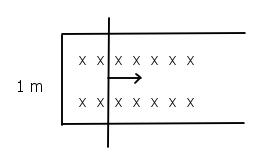 01 - Una espira rectangular posee un lado móvil que se desplaza por el interior de un campo magnético uniforme de 1 T, con velocidad constante de 1 m/s, debido a un agente externo, tal como se muestra en la figura.